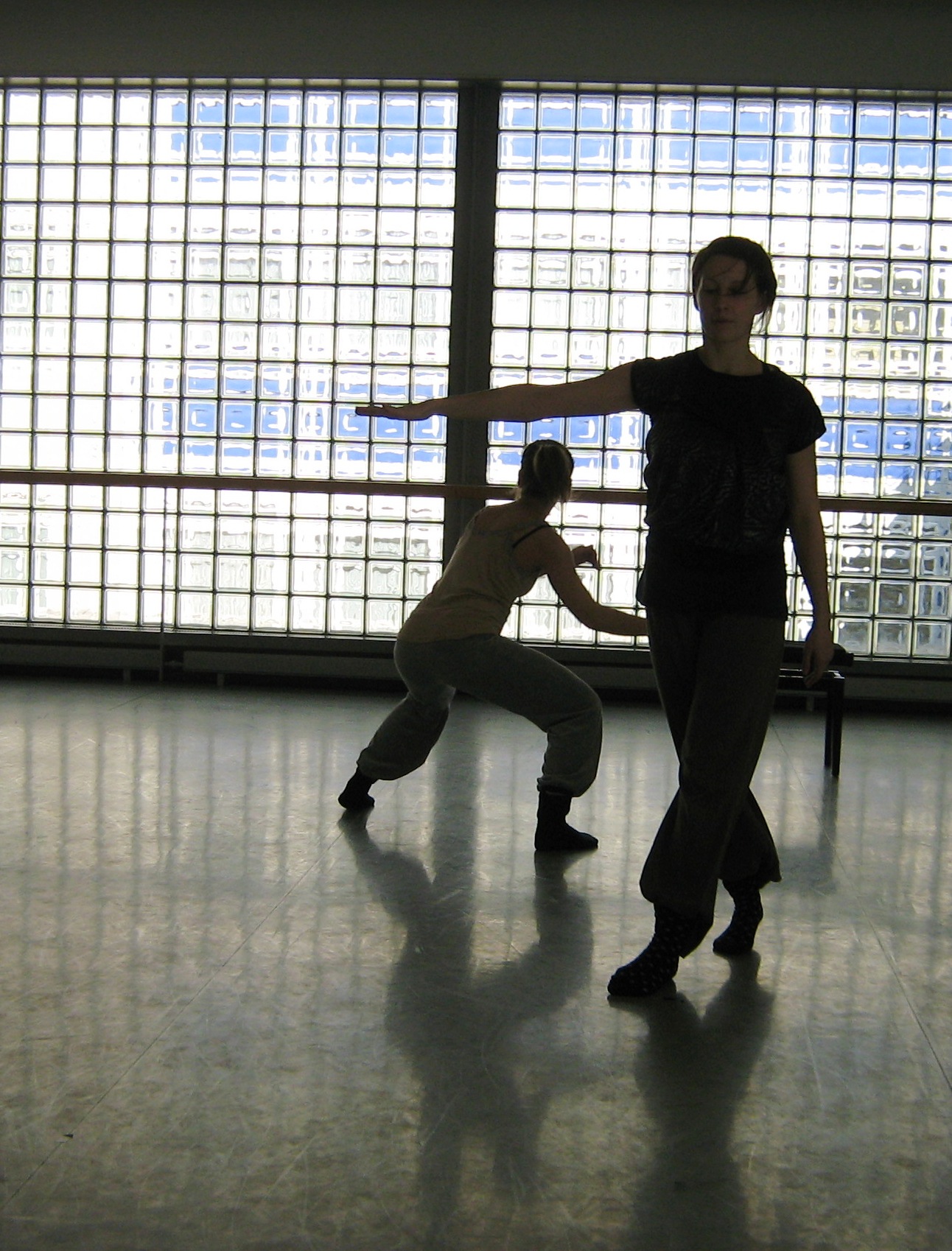Note the relevance of scores in this context, an aspect that greatly complicated my own investigations. In musical composition the score embeds the composer’s purpose for the work. Using ambiguous visual scores was one means of bringing about difference in performance. (As in Earle Brown’s December 1952). I was greatly influenced by the work and writings of Fluxus artists, especially that of Ken Friedman, who offers his scores freely for reproduction. He calls the difference in each reproduction of the work its “musicality”. Another influence on my study was my exposure to Matteo Fargion’s work with scores. Fargion’s ethos is to ground choreography in more objective compositional choices, rather than simply playing around with material in space and seeing what happens. During a workshop with the composer, he asked us to write out a score by which two people walk across a space and back. Even within this limitation a number of possibilities become available. The difficulty is to introduce each change at the right moment, preventing the audience from losing interest in the work as it develops. I wondered whether it was possible to achieve this same rate of change without actually setting it. This involved displacing my control through the use of rules. In this way a dancer’s decision to move from one vocabulary into the next was determined by the activity of their corresponding partner. By introducing conditions by which a dancer could chose to make a change, I retained some sense of cohesion throughout the work, whilst allowing for some mobility from one performance to the next.