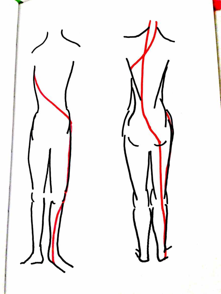 Remember that these are simplifications and no body is 100% of one thing.There are millions of variations of the above. Sometimes one side of the line is tight on one leg and lax on the other leg. (I will talk about this later when I look at whole body movement and the spiral line.)