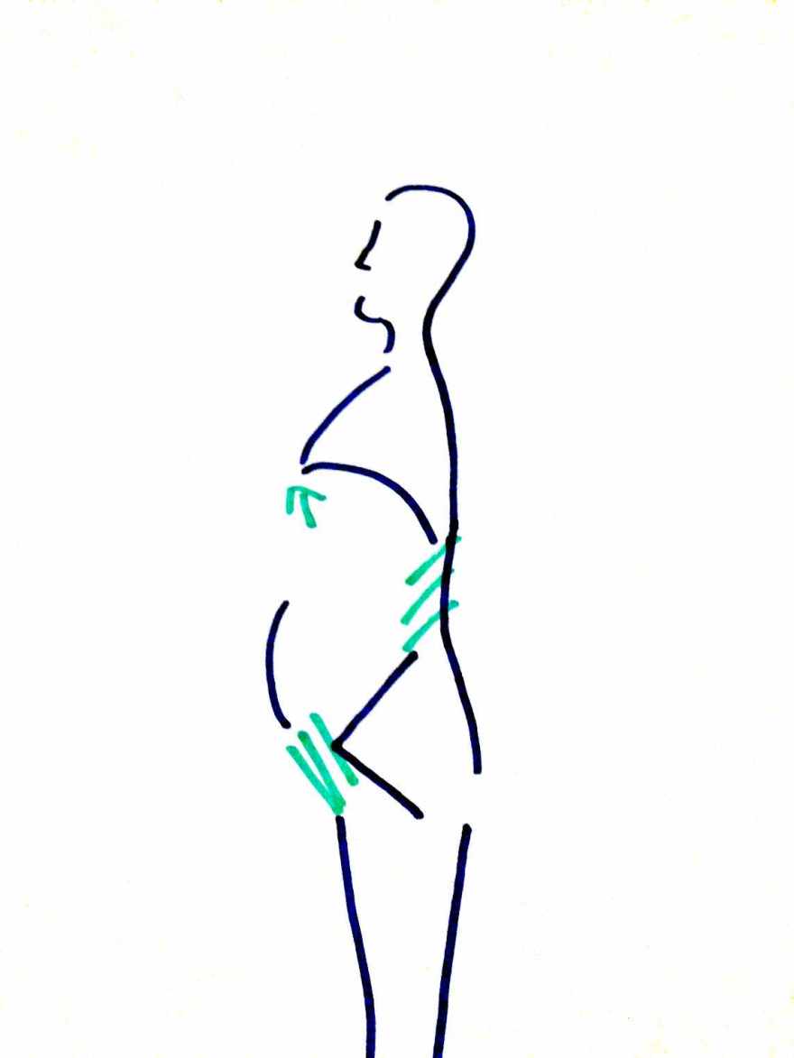 in my mind of clients who have a DR, the picture is roughly this. The rib cage is flailed, compressing the mid-back area and the pelvis is in a forward tilt. This appears to create more space out the front, making it the favoured posture for a pregnant woman. I think that men who adopt this posture (if they are not obese) do so because they may be trying to sit upright, but don’t have the mobility in their upper thoracic area or shoulders, and therefor hinge on the mid-back section. Once you displace the ribs in this way, it makes it very hard to feel a connection through the centre, so any abdominal work is likely to go into the Hip Flexors or lower back.